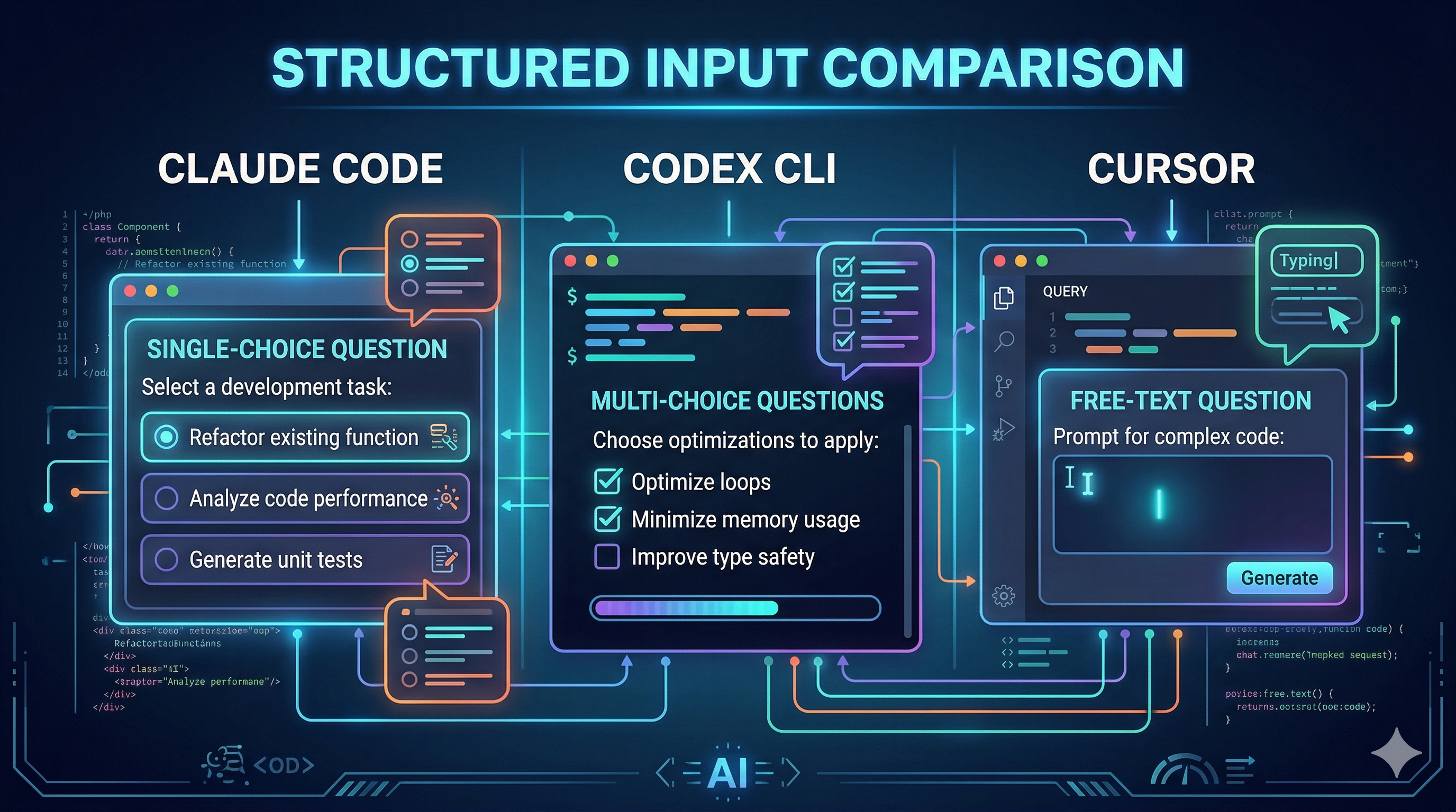There is also a shared constraint: both Codex and Cursor restrict structured input to plan mode only. In default/agent mode, these tools are simply unavailable. Community members on both platforms have already filed requests to extend support to all modes — a sign that developers want this capability everywhere, not just during planning.